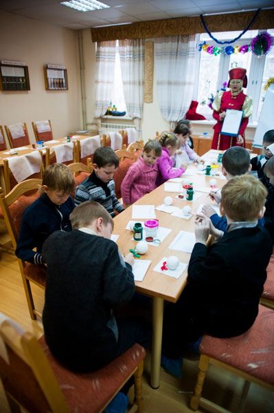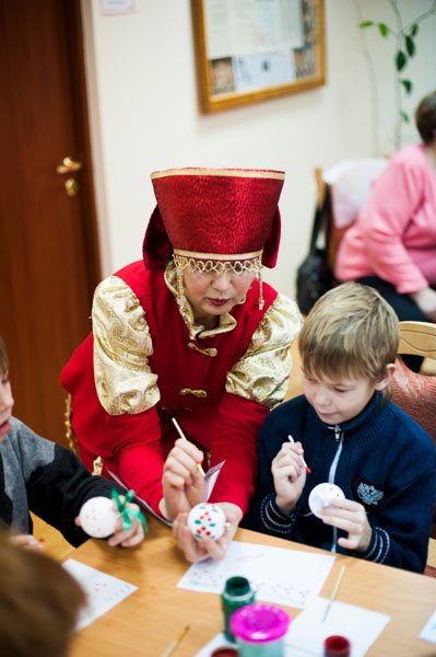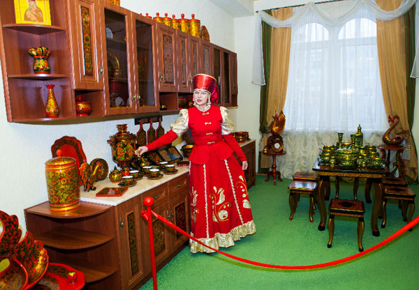Чтобы разгадать все тайны и найти путь к самой Государыне Хохломе ребята взяли волшебный фонарь и отправились в путь. Все сложные задания выполнялись с огромным удовольствием и азартом. Так шаг за шагом, идя по залам музея, маленькие путешественники постигали, в игровой форме, секреты хохломского мастерства. У самого чарующего зала музея «Царская комната» ребят ждала Государыня Хохлома. Она радушно встретила гостей, показав все хохломские чудеса своего дома. На память о поездке в Семенов ребята, из рук Государыни Хохломы, получили новогодние игрушки, которые расписали традиционным орнаментом.