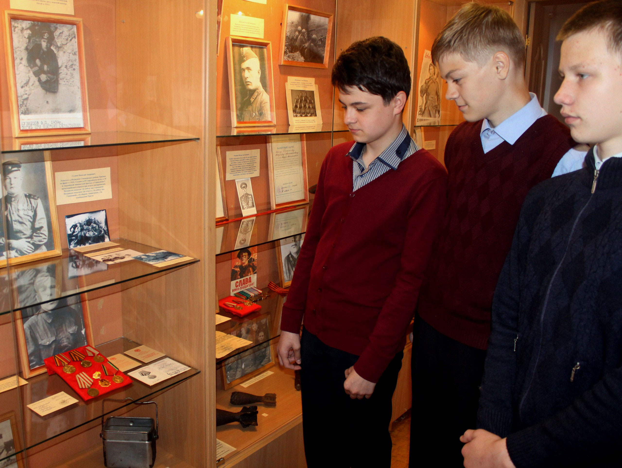 Обучающиеся школы №1 в этот день познакомились с материалами, рассказывающими о земляках - семеновцах, участвовавших в боях под Смоленском, в обороне Москвы, Одессы и Ленинграда. Среди участников этих сражений - комбатстрелкового батальонаРоманов Федор Артамонович, младший сержант Левин Леонид Павлович, старший политрук госпиталя Кузнецов Федор Петрович, старшина медицинской службы Голованова Александра Васильевна, ефрейтор, зенитчица Шигабеева Галина Яковлевна, ефрейтор Теричев Александр Федорович.