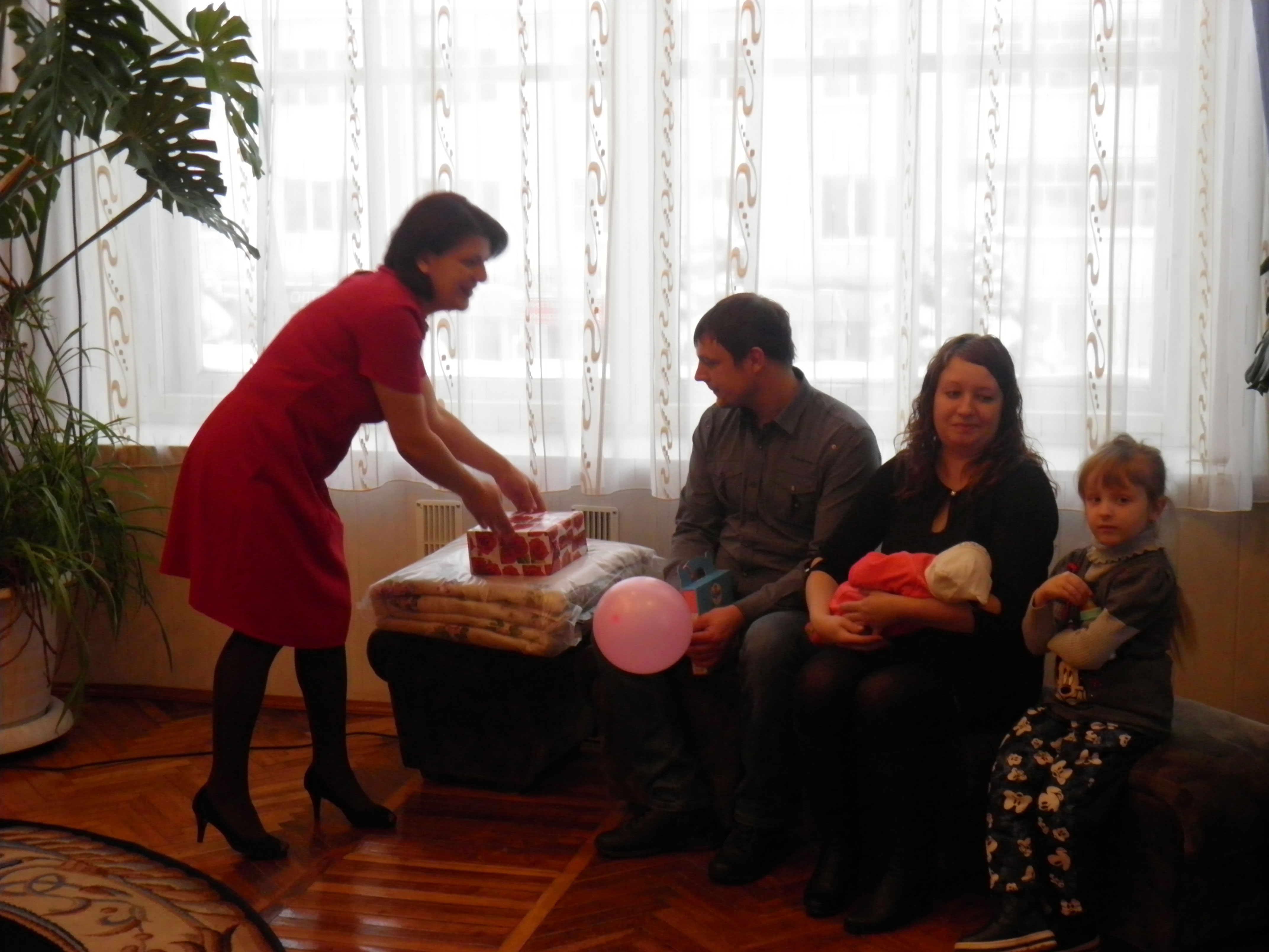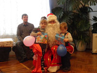 И, конечно, как водиться ни один праздник на Руси не обходится без песни. Замечательные музыкальные подарки преподнесли солистки вокального ансамбля «Пересвет» Центра культуры и искусства Елена Чаховская и Ирина Засовкина, а также Екатерина Майорова, солистка вокальной студии «Созвездие» Центра детского творчества. Не заставили себя ждать и сюрпризы. Всех собравшихся в преддверии Нового года пришел поздравить Дед Мороз, само собой, и здесь не без подарков. На этот раз их получили старшие брат и сестра маленькой Ульяны, Кирилл и Виктория, конечно же состоялось праздничное фото Дедом Морозом на память.