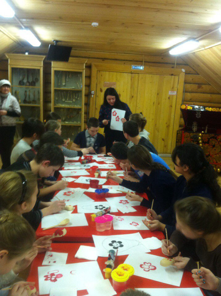 На этот раз гостей обучали росписи ложки.Ребята из р.п. Красные Баки побывали сегодня на познавательной экскурсии и увлекательном мастер-классе! Ложечку писали в технике "Семеновская роспись". в итоге каждый увез с собой готовый сувенир ручной работы. Посетить мастер - класс по росписи ложки можно в двух отделах МБУК "Историко художественный музей" : МТЦ "Золотая Хохлома" и МНБ "Дом Семёна ложкаря".Осталось сделать заявку по тел. 5-65-97, 5-68-03, 5-61-41(единое окно заявок). Ждем вас в гости!!!