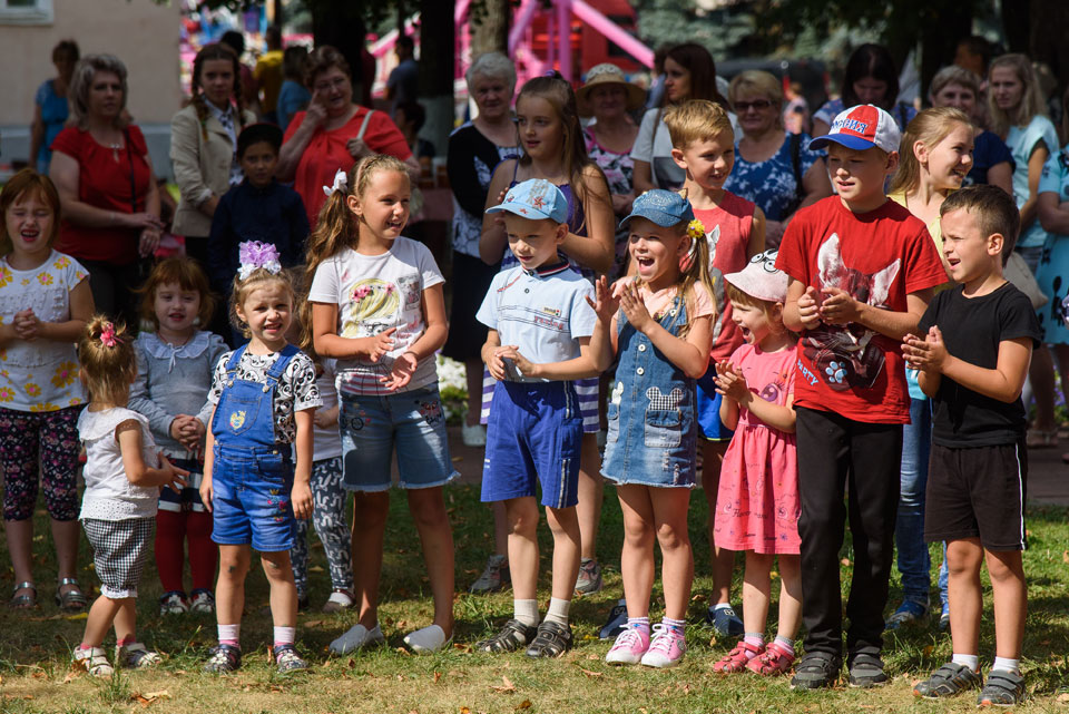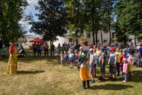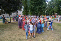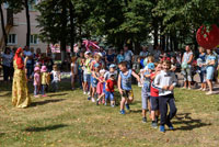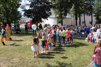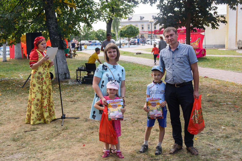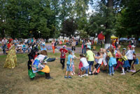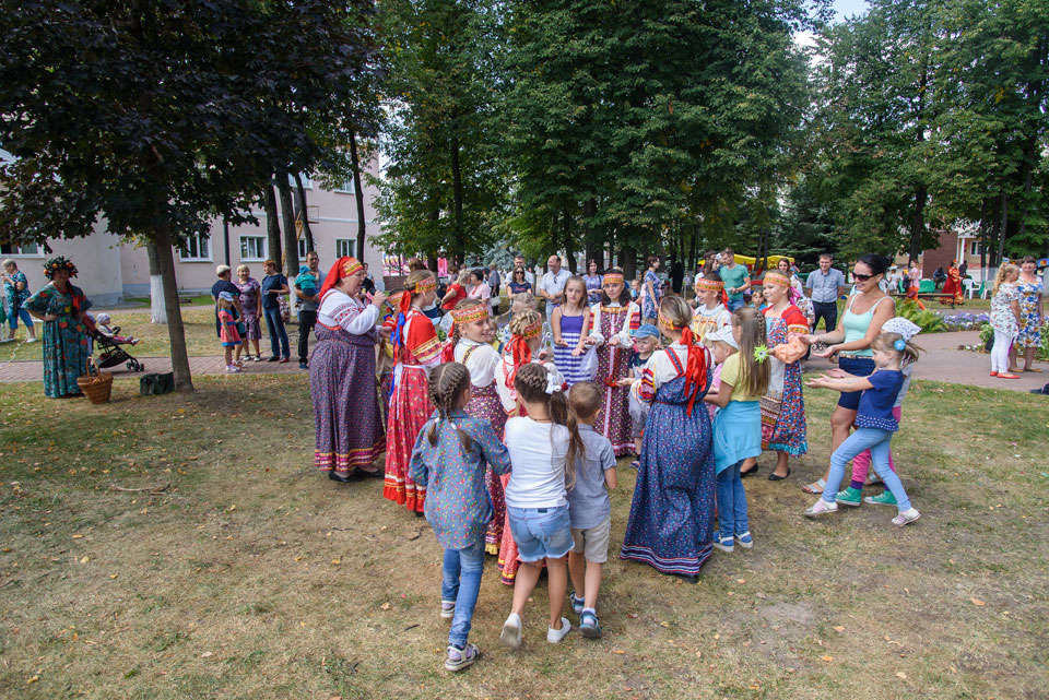 Активно проходил детский командный конкурс, где надо было перенести яблоко разными способами - смех был лучшей наградой всем присутствующим. Ансамбль «Весёлые потешки» на протяжении всего мероприятия радовал публику своим выступлением.
