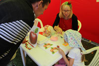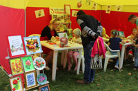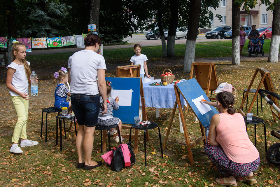 Детская художественная школа предложила написать натюрморт на подготовленных заранее мольбертах, устроила конкурс рисунков на яблочную тему, а еще провела обучение всех желающих по изготовлению закладок с символом праздника.