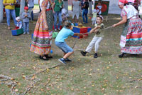 Перетягивать канат, играть на ложках, скакать через веревочную скакалку, танцевать «Яблочко» - во всех этих народных забавах можно было поучаствовать на площадке, обустроенной сотрудниками ГДК «Керженец». Самые маленькие тоже не остались в стороне: они строили конструкции из мягких модулей, а еще с большим усердием и старанием, в сопровождении взрослых, ребятишки старались угодить в «яблочную мишень».