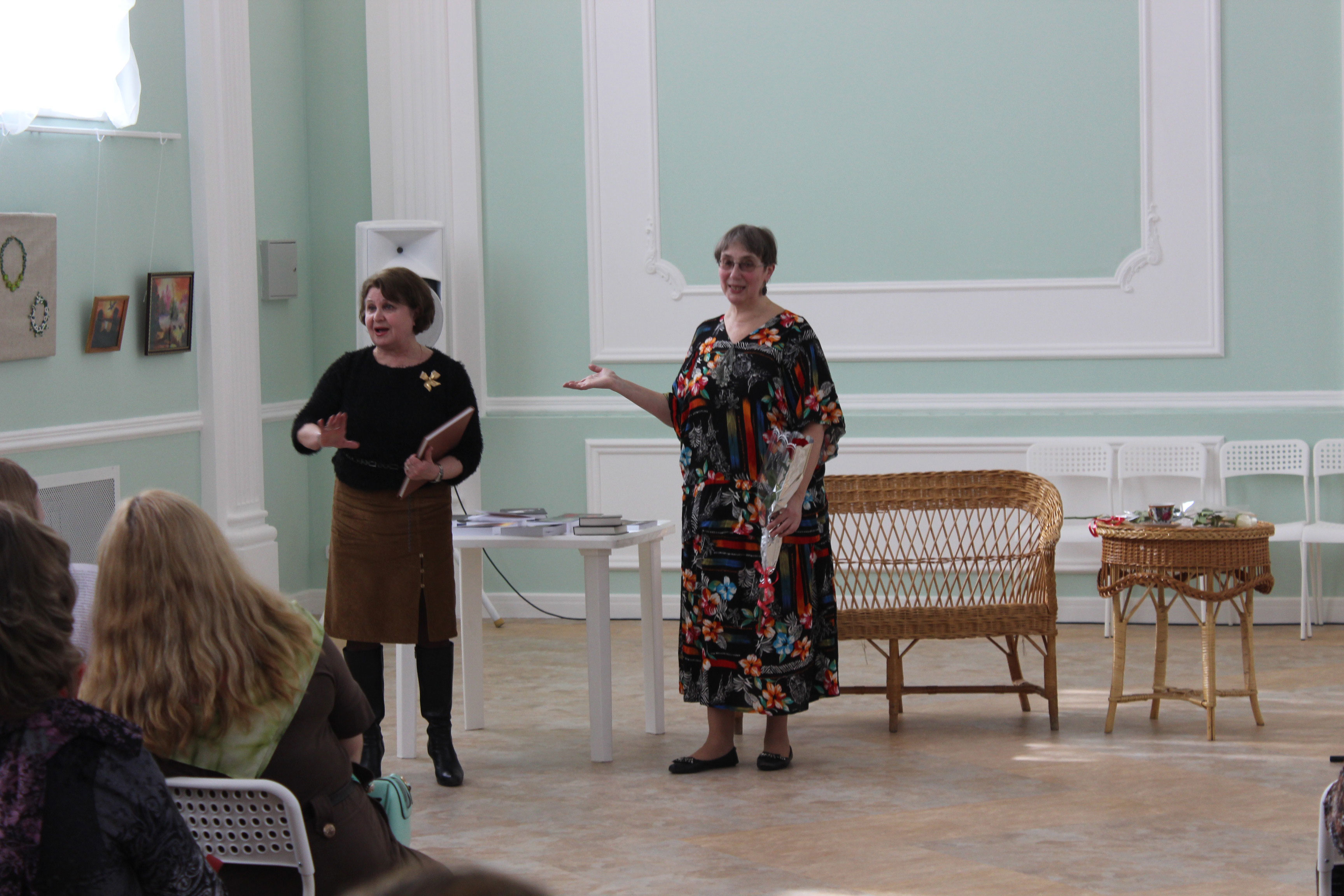 И вот по удачному стечению обстоятельств, на фоне этой новой и милой экспозиции, проходил творческий вечер нижегородской поэтессы, писательницы Елены Николаевны Крюковой.